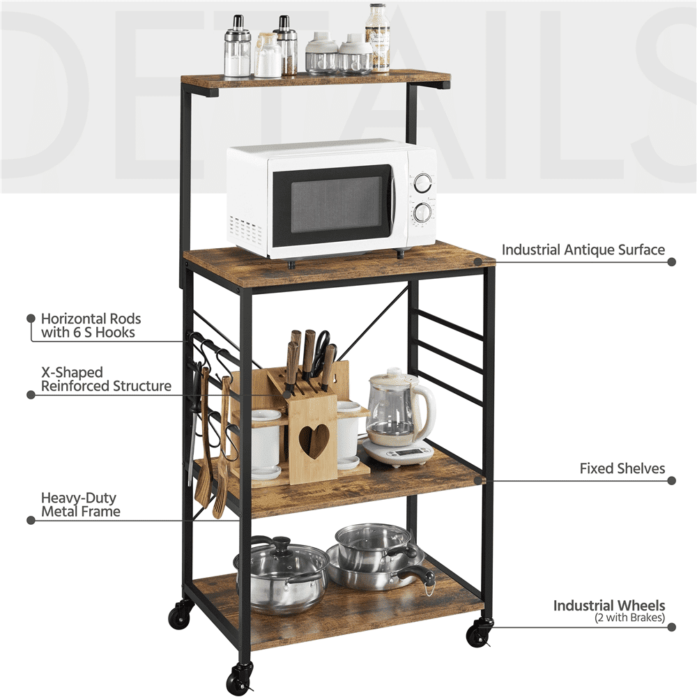 50"H Metal Kitchen Baker's Rack with Side Hooks, Rustic Brown 50"H Metal Kitchen Baker's Rack with Side Hooks, Rustic Brown 50"H Metal Kitchen Baker's Rack with Side Hooks, Rustic Brown